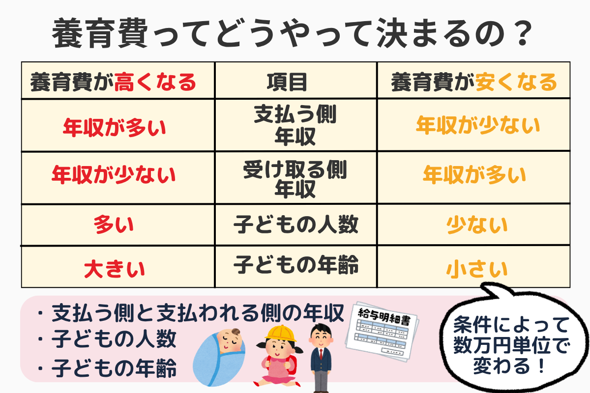 養育費に影響する要素とともに解説します。
