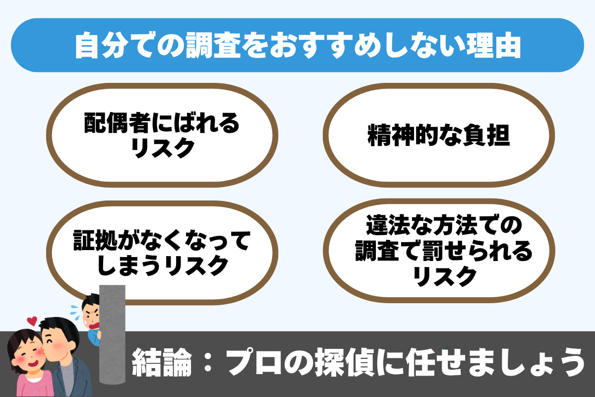 確実に浮気の証拠を集めたいなら自分で行うのは本当におすすめしません。
